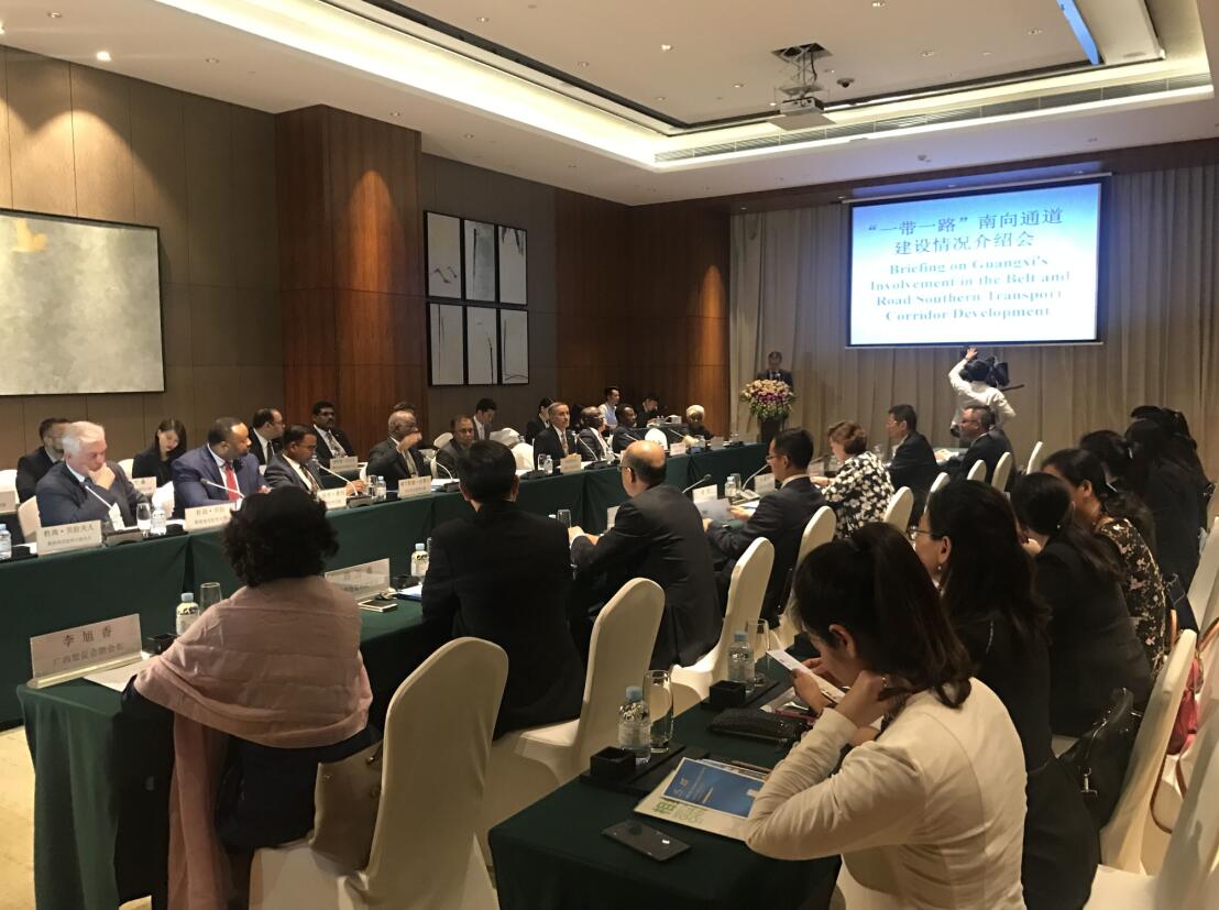 24日下午使节团听取“一带一路”南向通道建设情况。
