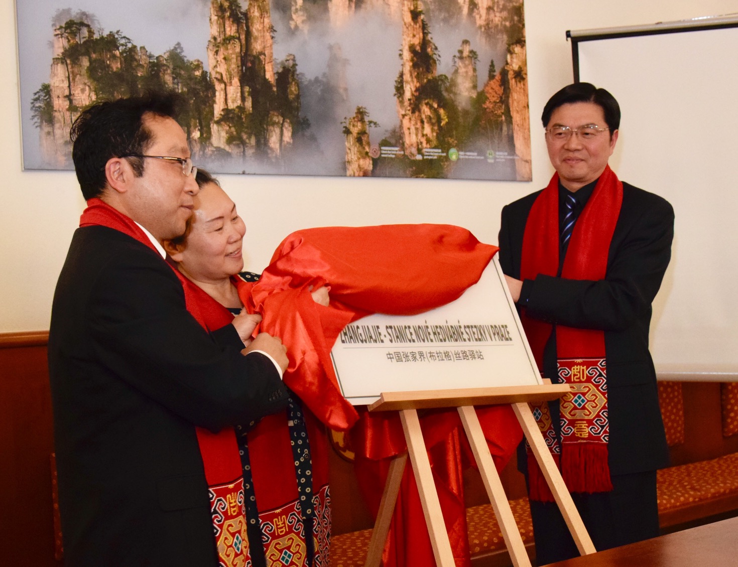 中國國際貿易促進委員會湖南省分會副會長傅丹舟在揭牌儀式的講話中說,布拉格是捷克共和國的首都和著名的旅遊城市,地處歐洲大陸的中心,在交通上一向擁有重要地位,與周邊國家的聯系也相當密切。在這座旅遊名城建立張家界的絲路驛站,一定會擴大張家界歐洲大陸的影響,助推張家界走向世界。