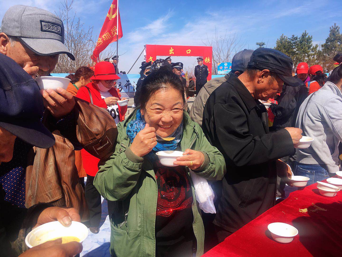 開江活動上,最大亮點之一莫過於千人品江魚。記者在現場看到,10口大鍋依次排開,一鍋鍋的開江魚經過廚師們5個小時左右的精心燉制,肉香湯鮮。這時的魚肥、肉質鮮嫩、富有彈性,前來品嘗魚湯和魚肉的市民和遊客大快朵頤,現場立即呈現一種“大口吃魚肉,大口喝魚湯”的景致。