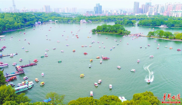 4月30日,湖南烈士公园年嘉湖上游船穿梭。当天是“五一”假期的第二天,市民纷纷外出游园,享受假日时光。见习记者 傅聪 摄