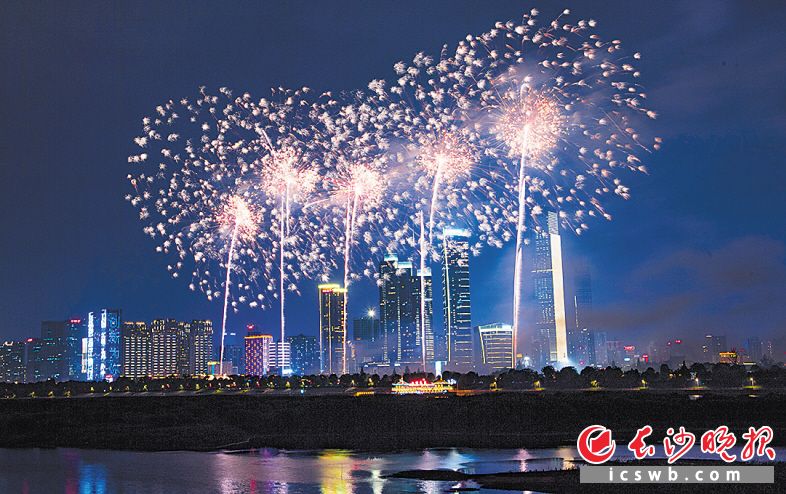 昨晚,橘子洲上演“五一”主题焰火《播种新希望》,市民游客齐睹美景。长沙晚报记者 邹麟 余劭劼 摄影报道
