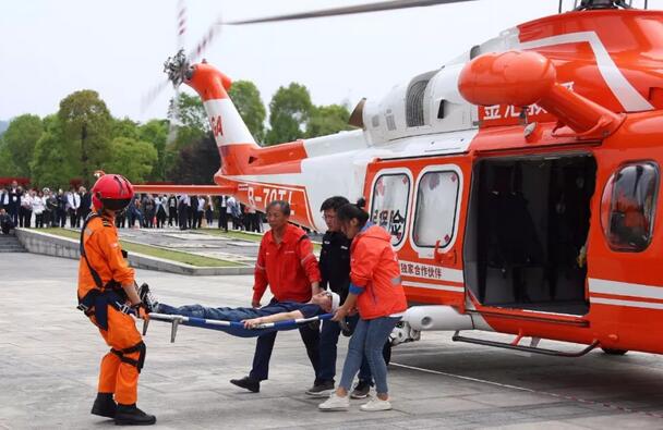 近日,中国人民财产保险股份有限公司黄山市分公司携手上海金汇通用航空股份有限公司(简称金汇通航),在皖黄山市屯溪世纪广场成功举办了"人保品质服务 护航美好生活"直升机救援服务启动仪式暨空地立体医疗救援演练。