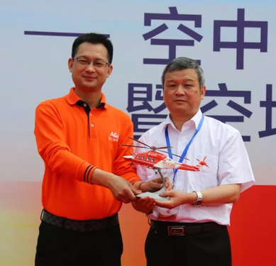 启动仪式上,金汇通航还向人保财险黄山市分公司总经理张弘赠送了救援直升机模型。