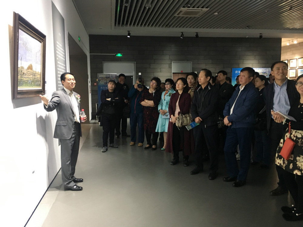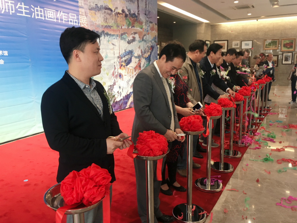 会上,黑龙江省中华炎黄文化研究会会长石树祥向此次画展赠送书法作品——“伏尔加之声”。随后,与会嘉宾为画展开幕剪彩。