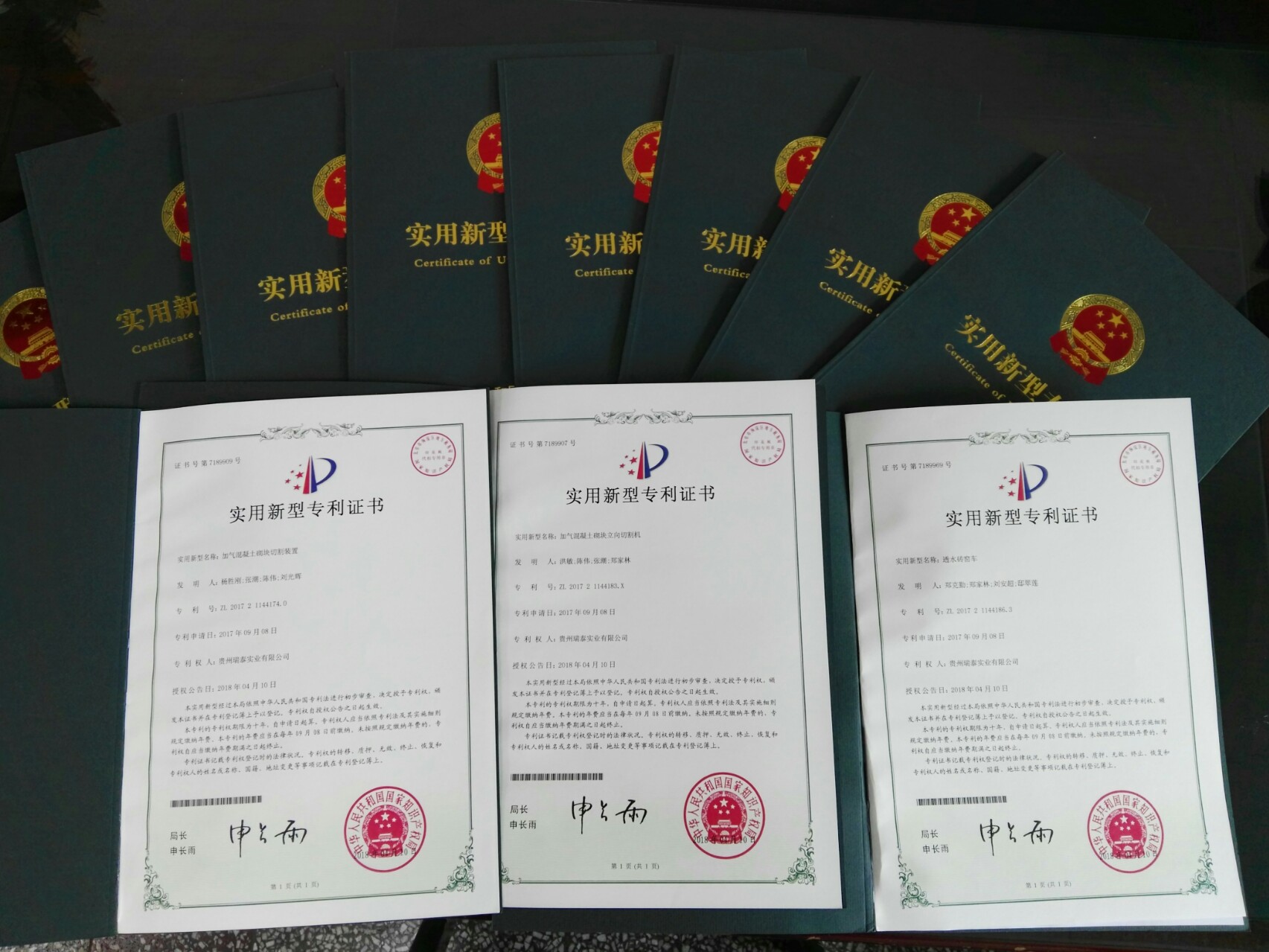據悉,在該公司長期重視科技,激勵員工創造性的制度下,各單位的科技創新熱情和能力不斷提高,基層職工積極參與項目創新,為該公司經營生產增添了新的動能和活力。在2016-2017年的加氣砌塊攻關以及環保建材公司小改小革項目中,提煉了《加氣混凝土砌塊料漿攪拌罐》《加氣混凝土砌塊切割裝置》《加氣混凝土砌塊立向切割機》《加氣磚模框吊耳防碰裝置》《加氣混凝土砌塊坯體側邊清掃器》《蒸汽回收利用裝置》《加氣磚發泡模框側板清渣裝置》《抱磚機》《廢熱水回收利用系統》《透水磚窖車》《加氣混凝土砌塊坯體上部餘料去除裝置》11個項目申報國家新型專利,經國家知識產權局評審,全部獲得實用新型專利證書。
