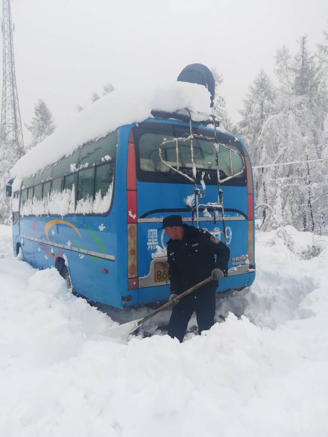 “早上從中股流林場出發時候雪沒這么大呀,可誰成想這三節砬子雪下的這么大,車軲轆直打轉,一步都走不了,信號還不通。這車上還有這么多乘客,這可咋辦好呀?幸好警察來了,可得幫幫我們啊”客車司機莊彥斌站在雪地裏急得直跺腳。