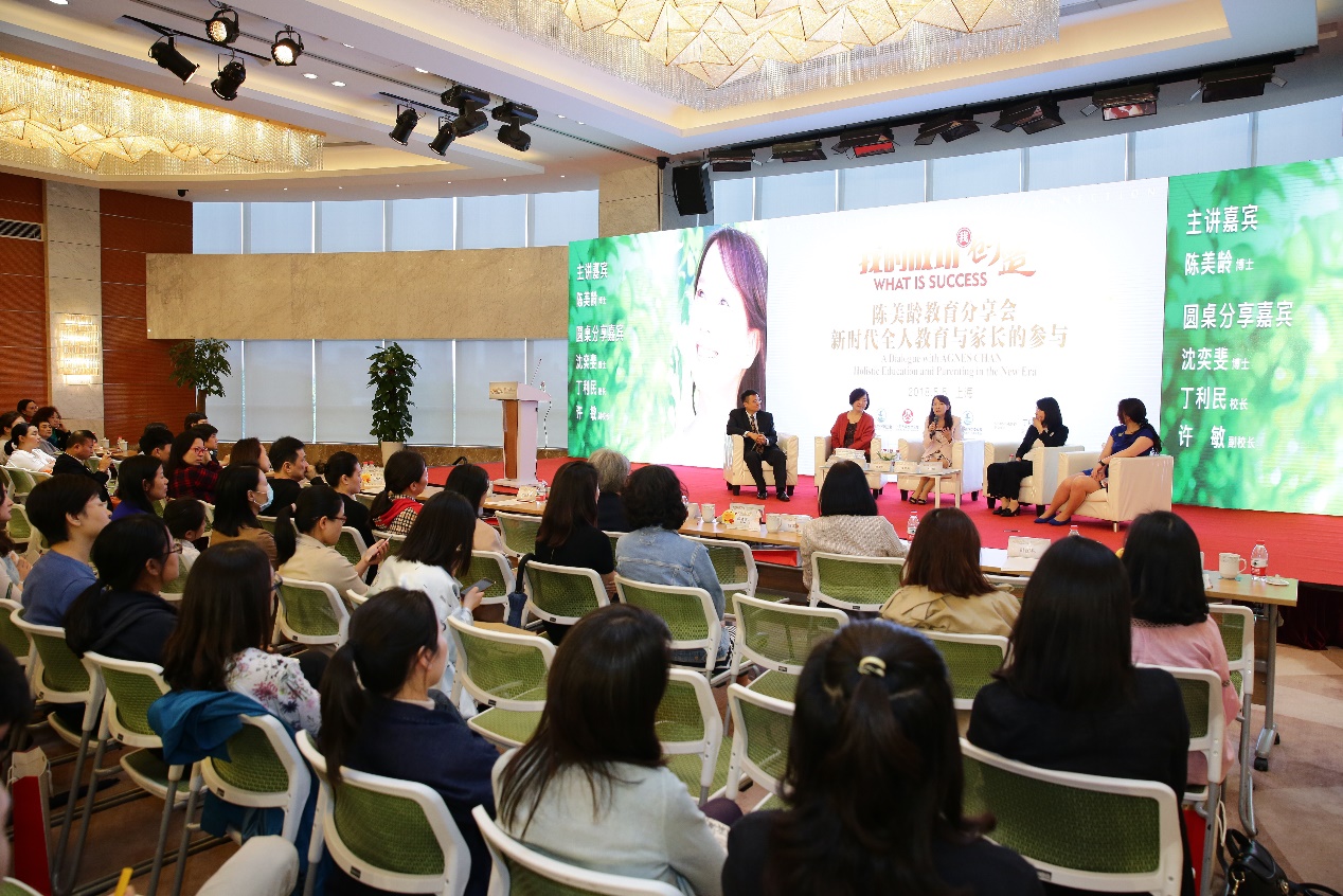 活动邀请到了联合国国际儿童基金会亚洲亲善大使陈美龄女士作主题演讲,与听众分享了作为女性如何为平衡家庭和工作与社会抗争、成功培养三个儿子进入斯坦福大学的故事。分享会上,复旦大学副教授沈奕斐、上海理工大学附属小学校长丁利民和包玉刚实验学校副校长许敏参与对话。在中国常熟世界联合学院赵宾的主持下,嘉宾们围绕“新时代全人教育与家长的参与”的主题展开讨论。共有近350名在沪港澳台朋友、海外华侨华人代表及本地学生家长出席活动。