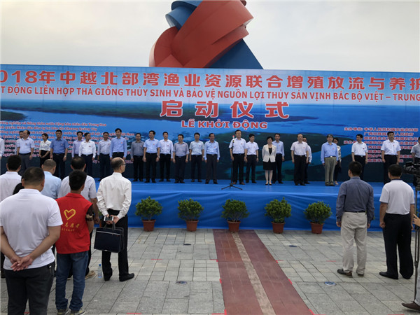 【香港商报网讯】5月8日,2018中越北部湾渔业资源联合增殖放流与养护活动在中越边境广西东兴市北仑河口举行。活动旨在落实中越双方共识,共建海上丝绸之路,推动全球渔业可持续发展。