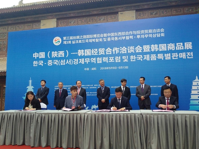 中国(陕西)—韩国经贸合作洽谈会暨韩国商品展签约仪式现场