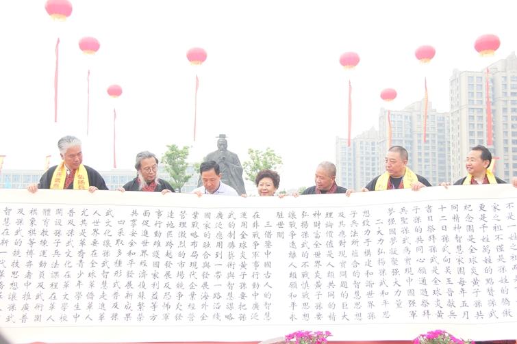 孙武后裔展示孙武祭大典祀组委会13米倡议书长卷