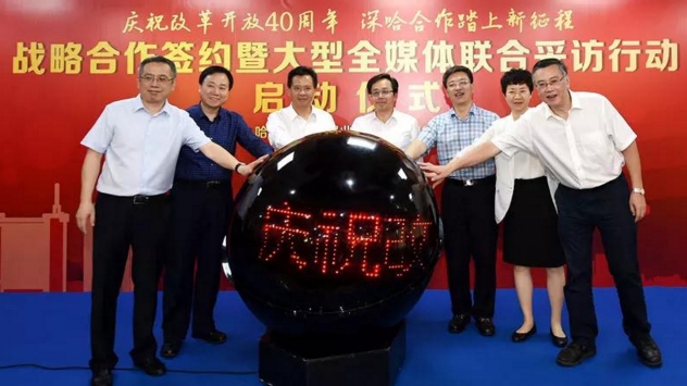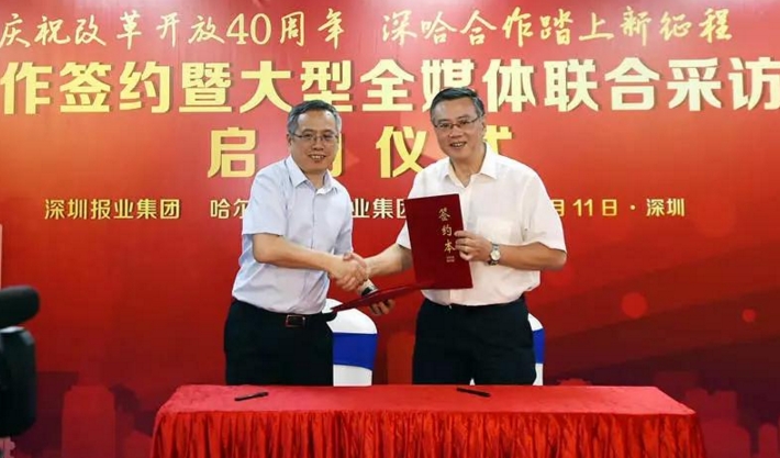 两家报业集团正式签署《深圳报业集团与哈尔滨日报报业集团对口合作框架协议》,同时启动“新时代 新合作 新征程”庆祝改革开放40周年深哈合作大型全媒体联合行动。深圳市委常委、宣传部长李小甘,哈尔滨市委常委、宣传部长焦远超出席签约和启动仪式。