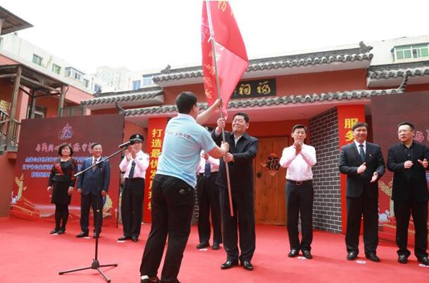 沈阳市副市长、市公安局长杨建军向志愿者授旗。