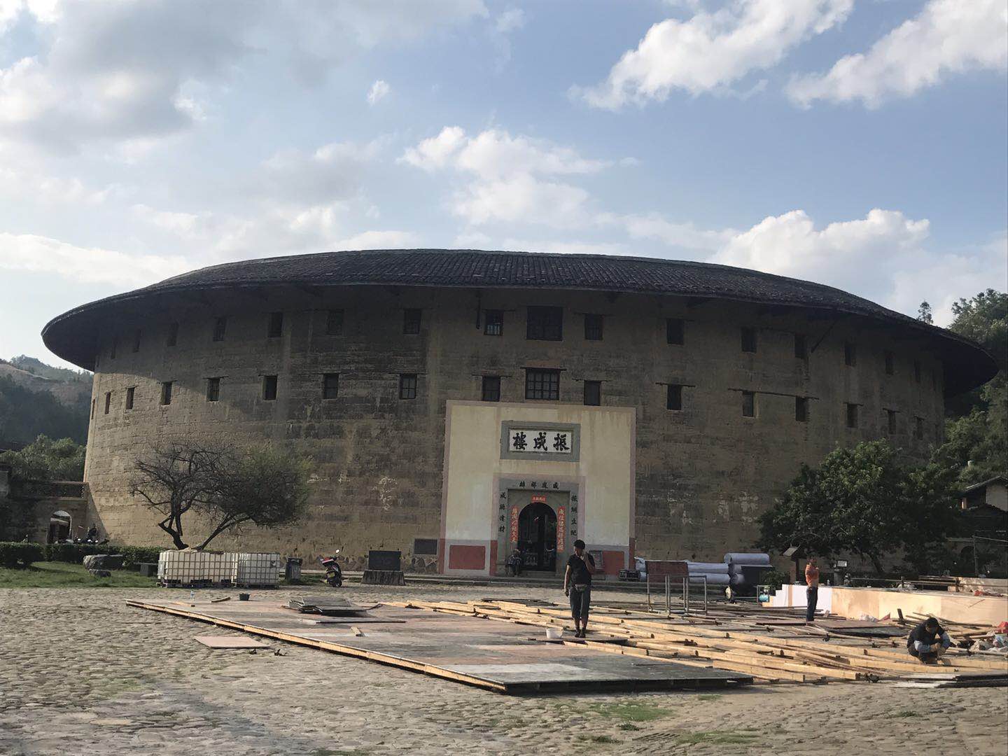 2018台灣媒體“清新福建行”采訪團15日下午走進位於中國最美麗的鄉村——洪坑的福建土樓客家民俗文化村。 振成樓的“樓主”林日耕向兩岸媒體記者聲情並茂地講解土樓曆史、建築結構和其所蘊含的客家文化。整個洪坑村都是林氏家族的聚居地,林日耕是振成樓的第三代主人,領裏鄉親都親切地稱呼他為“阿耕”。據介紹,振成樓主體是以我國神奇的八卦樓所布局,卦與卦之間設防火牆,萬一失火,只能燒一卦,不會蔓延。樓中樓是二層的磚木結構,內有石雕柱腳、木刻門面、琉璃瓦當和窗戶,二樓走廊是鑄鐵鑄成有梅蘭菊竹為圖案的欄杆,緊連著全樓中的中心大廳——樓中的重要活動中心場所,作議事廳、宴客廳,並可兼做戲台,樓上觀戲台上中間比兩旁高6寸,中間為客人座位、兩旁為主人座位,意味著客人比主人高一等,這也是客家好客的象征。 振成樓,全樓的設施布局既有蘇州園林的印跡,也有古希臘建築的特點,堪稱中西合壁的建築奇葩。1995年它的建築模型與北京天壇作為中國南北圓形建築代表參加了美國洛杉磯世界建築展覽會,引起了轟動,被譽為“東方建築明珠”。