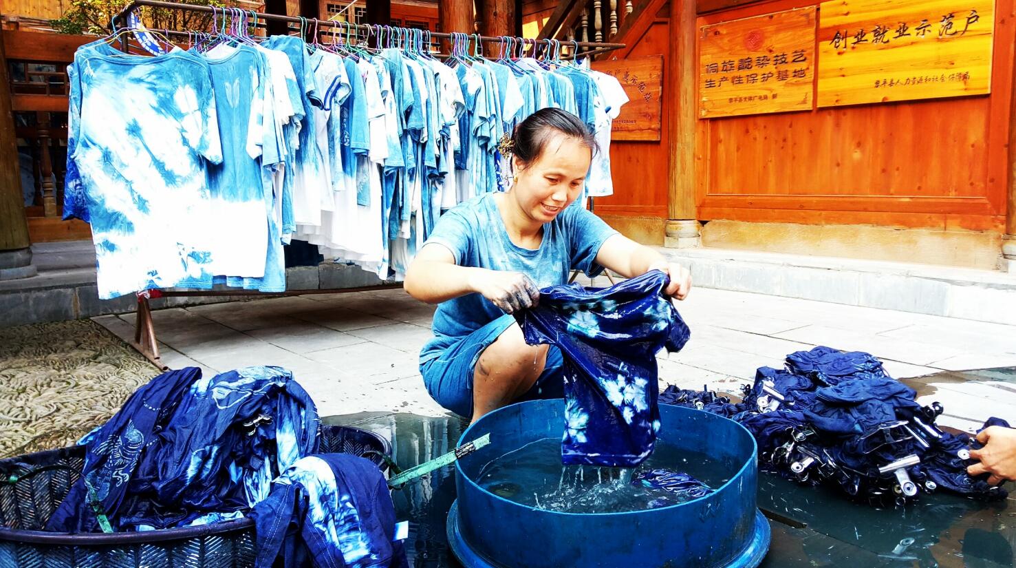 “未来3年公司将在肇兴、翘街建设的6个“侗族靛染文化手工产品专卖体验店”,大力培训和培养从事传统工艺的年轻人,增加生产能力。加大民间传统工艺与现代时尚相结合的产品研发,主要研发民族服饰、围巾、包包、床上用品、挂件等,研发新产品100个品种以上。加大靛染体验点的宣传与推广,未来3年完成60个旅行社合作协议签订保证客源,同时新增织布、织锦、刺绣、采蓝草、制做靛泥等环节的体验。引导和培训年轻染娘、织娘和绣娘,在开办定点定时侗族传统工艺手艺宣传性讲解,增加游客对侗族染、织、绣文化的了解,提高游客对文化产品价值的认可。”黎平侗品源公司侗族蓝靛靛染技艺传承人陆彦梅向记者介绍说。