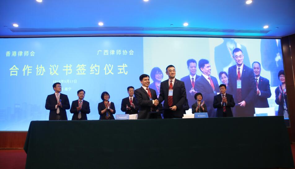 桂港两地律师会签合作发展协议书。港驻桂联络处供图
