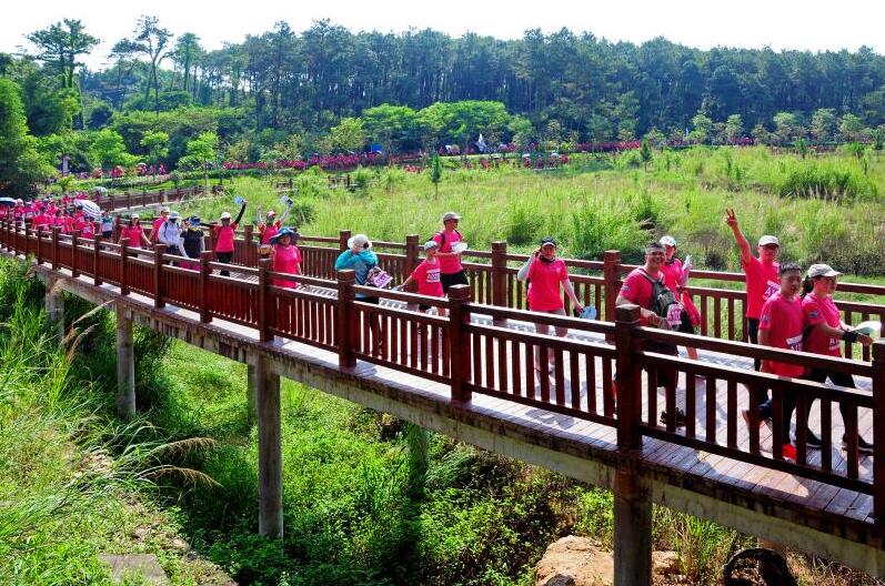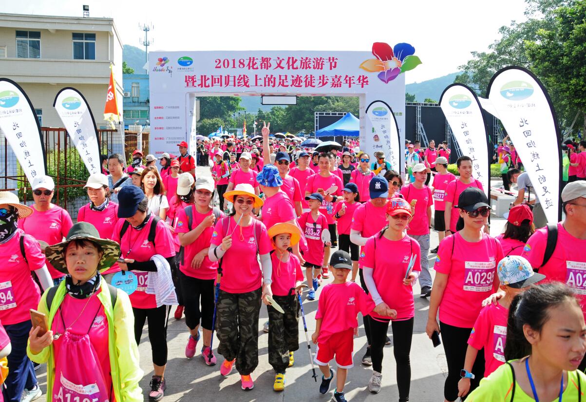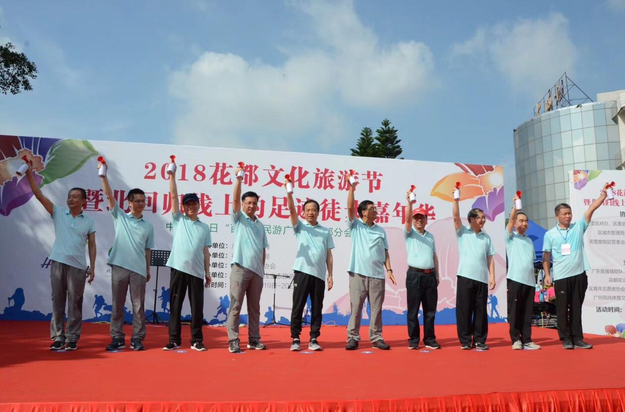 2018年5月19日上午,由广州市旅游局指导、花都区商务局(旅游局)主办的“2018花都文化旅游节暨北回归线上的足迹徒步嘉年华活动”在广州市花都区芙蓉度假区盛大启动。区人大常委会主任郭共添,区政协主席陈家飞, 区委常委、副区长罗干政,区人大常委会副主任徐永生,区人大常委会副主任蓝海滨,区政协副主席徐兆东等出席了本次仪式,区各相关单位、旅游企业代表及徒步爱好者等4000余人参加了启动仪式。