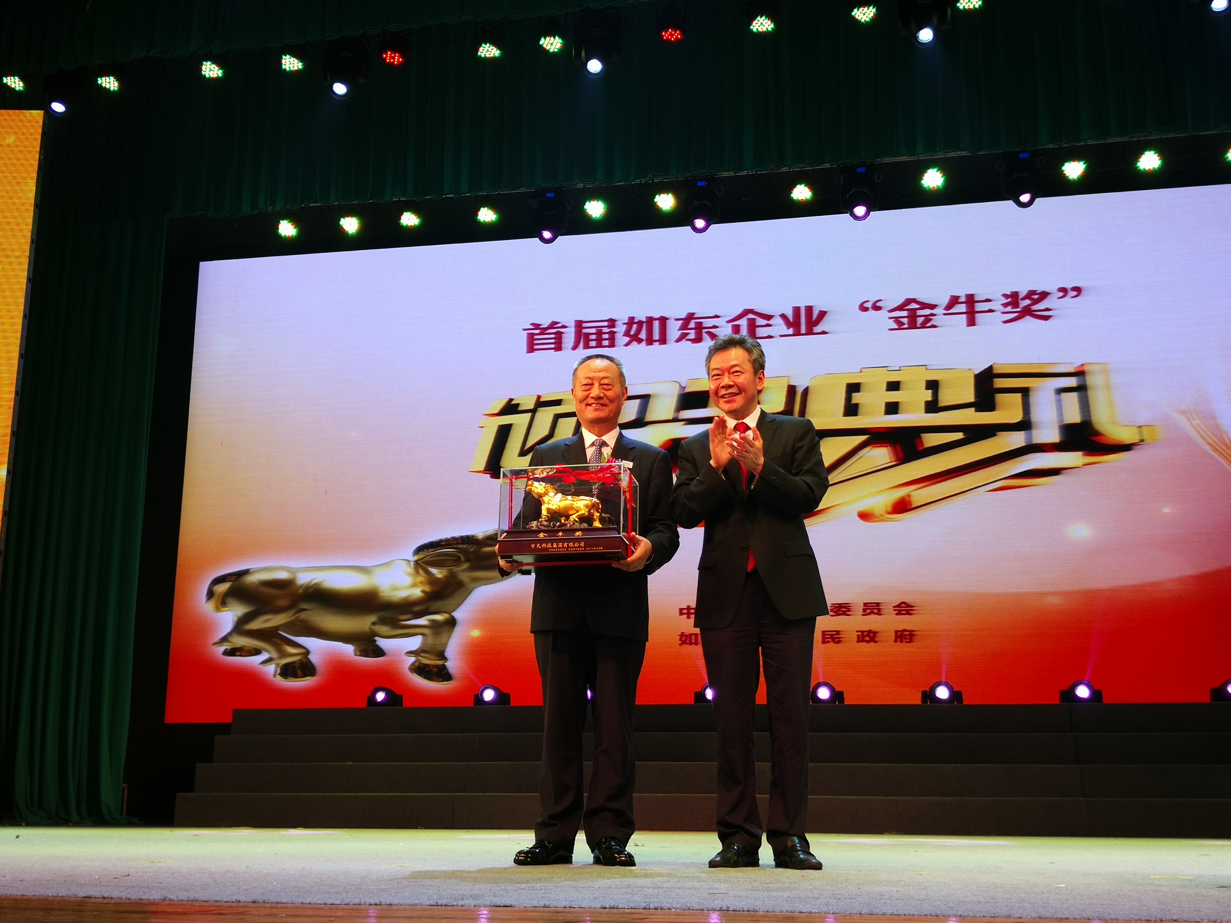 【香港商报网讯】记者杜林、赵振华报道:18日,江苏如东首届企业“金牛奖”颁奖典礼上,中天集团获“金牛奖”特别贡献奖,中石油江苏液化天然气有限公司等32家企业分别获明星企业“金牛奖”及提名奖、创新企业“金牛奖”及提名奖。33家企业捧走33头纯金金牛。