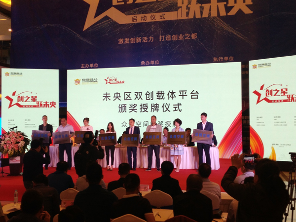 在随后举行的未央众创空间颁奖授牌仪式上,未央区对表现突出的8家众创空间给予认定授牌并进行奖补。优+科技园总经理吴警作为创业代表分享了创业历程。他表示,近两年西安市发展环境明显提升、节奏明显加快,创业机遇不断涌现,古城西安真的“活”了起来。为了感谢未央区卓有成效的双创工作,吴警专门组织小伙伴设计了一枚精美logo,为未央区创新创业工作献礼。