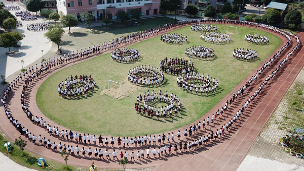 5月24日,在三江侗族自治县古宜镇中心小学,师生们在欢跳多耶。
