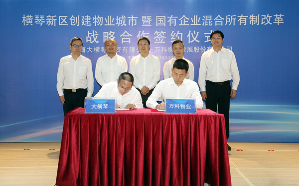 【香港商报网讯】记者陆绍龙报道:5月24日,珠海大横琴投资有限公司与万科物业发展股份有限公司正式签署战略合作框架协议,双方携手推动“物业城市”管理理念的落地。同时将以珠海大横琴城市公共资源经营管理有限公司(简称大横琴城资)为合作载体进行混合所有制改革(简称混改),这标志着横琴新区深化国有企业改革、创建全国“物业城市”试点工作正式启动。