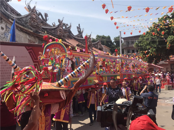 【香港商报网讯】26日,一年一度的保生大帝圣驾巡安文化节在厦门海沧三都瑞青宫举行,来自海峡两岸的30多个表演方阵、上万名信众汇聚一堂,让整个海沧“热闹滚滚”。