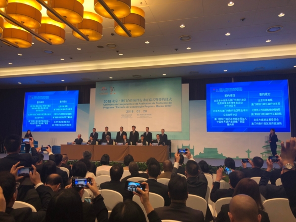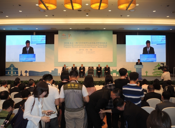 吉林同志在开幕式致辞,表示两地要完善合作机制,拓宽合作领域,加强人文交流,推动互利共赢;澳门行政特区崔世安在开幕式中表示,京澳两地交往历史悠久,合作基础稳固。自2016年两地政府共同启动“京澳合作伙伴行动”以来,双方合作领域不断拓展,内容不断深化。澳门将认真贯彻落实十九大精神,把加强京澳合作作为重要部署,借助“京澳合作伙伴行动”平台,全面推进澳门与内地合作。双方共同出席签约仪式,见证北京市体育局与澳门体育局就冬季体育运动方面有关事项签署合作协议,北京市人力社保局与澳门劳工事务局就职业培训有关事项签署合作协议,北京市旅游委与澳门旅游局签署关于澳门加入中国世界遗产旅游推广联盟意向书。在签约仪式上,两地还正式启动了2018年京澳公务员培训项目,澳门10名来京培训的公务员获赠培训证书。