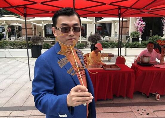 韩国大V中韩营销协会(KCMA)会长慎云哲展示糖牛(摄影艾涛)