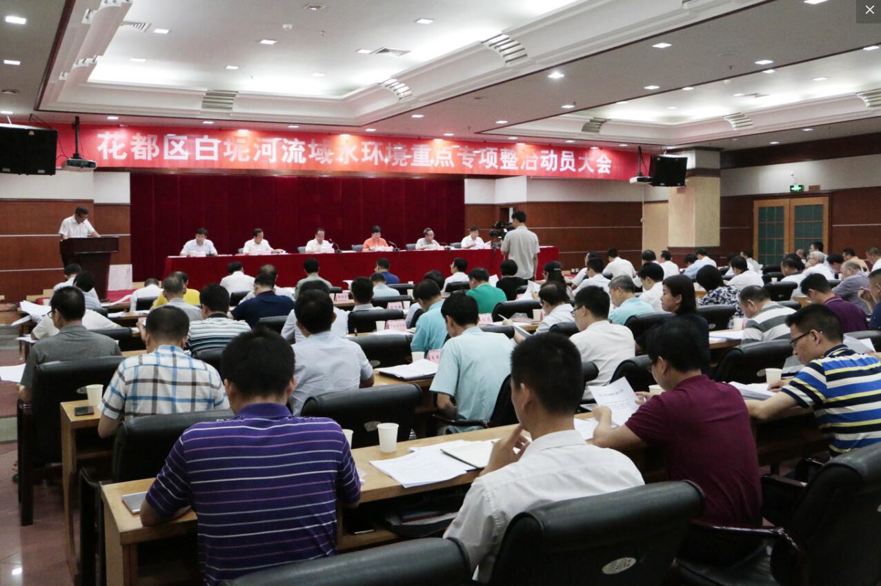 5月28日,花都区召开白坭河流域水环境重点专项整治动员大会,会议由区委书记黄伟林主持,白坭河市级河长黎明副市长,市水务局局长、党组书记龚海杰以及市环保局党组成员、执法监察支队支队长郑则文出席会议并讲话。区委副书记、区长、白坭河区级河长叶志良宣读《关于开展白坭河流域(花都段)水生态环境重点专项整治工作的决定》,并部署饮用水源保护区违法建设项目和违法建筑清理整治工作,副区长姚汉钟解读白坭河流域“一河一策”作战图,副区长闵飞部署花都区2018年“散乱污”场所清理整顿“利剑”行动工作任务。