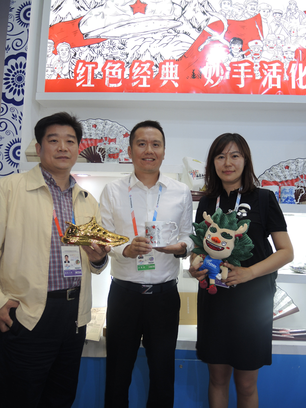 【香港商报网讯】记者林彬彬、张宇报道:2018 年 5 月 28 日,中国(北京)国际服务贸易交易会在北京国家会议中心隆重开幕。本届京交会由商务部和北京市人民政府共同主办,定位于国家级、国际性、综合型的国际服务贸易交易会,围绕推动服务业和服务贸易“开放、创新、融合”发展这一主题主线,以推动“一带一路”国家和地区间服务贸易发展为重点,广泛邀请国际组织、国际商协会及中国各省区市服务贸易专业客商,举办“高峰会”、“展览展示”、“行业大会”、“主题日”、着力打造全球服务贸易交易盛会。本届京交会精彩纷呈,共有 120 多个国家和地区参展,还有130余场论坛会议及洽谈交易活动。江西省文化创新展区的海纳文创亮点频现,他们依托赣鄱深厚的底蕴,将景德镇陶瓷艺术与当下的大体育、大健康、大旅游结合,实现传统文化活化与文创开发并举。集中展示了近年来在文化创意领域创新发展的成就,系统搭建了文创服务贸易交流融通和对接交易的平台。总经理李淳向记者介绍:这些年主要开发文旅和文化体育文创产品,京交会是全国最有影响力的服务交易平台,所以这次想借此大好时机,把一些具有江西传统优势的项目,通过创新创意出好的产品。北京去年的马拉松官方纪念品及吉祥物小龙人就是海纳设计开发的。还有给井冈山设计的红色经典文化的杯子,类似卡通式的漫画,把红色经典文化产品设计得更加年轻、时尚,青少年一见到就非常喜欢。杯子的手柄也是一项创新,手柄的轮廓设计为江西省地图,时刻体现出江西的元素。最引人注目的是用江西景德镇的陶瓷工艺开发出的一双用陶瓷材料做成的跑鞋,陶瓷是永恒的,是不会被磨破的。它并非是简单将跑鞋以陶瓷的形式呈现出来,它的身体内蕴含了马拉松坚持与拼搏的体育运动精神,是将一座战斗城市的独有文化与景德镇经典陶瓷艺术完美汇聚的陶瓷艺术战靴,它金灿灿、沉甸甸,它是战士足下的美丽,更是融合文化大地的艺术桥梁。