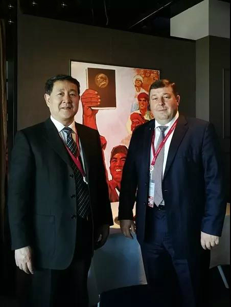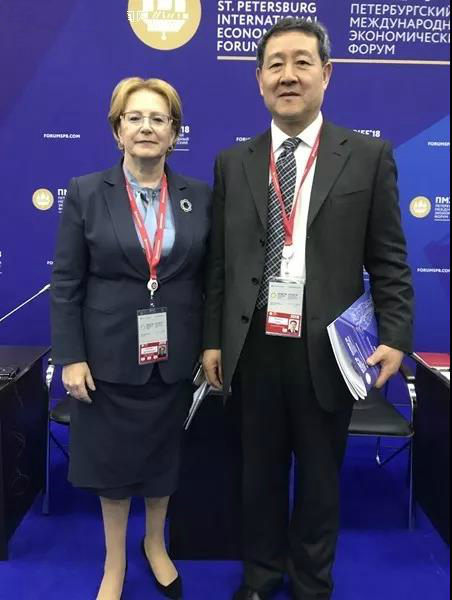 杨校长与俄罗斯卫生部部长合影 杨丹/摄