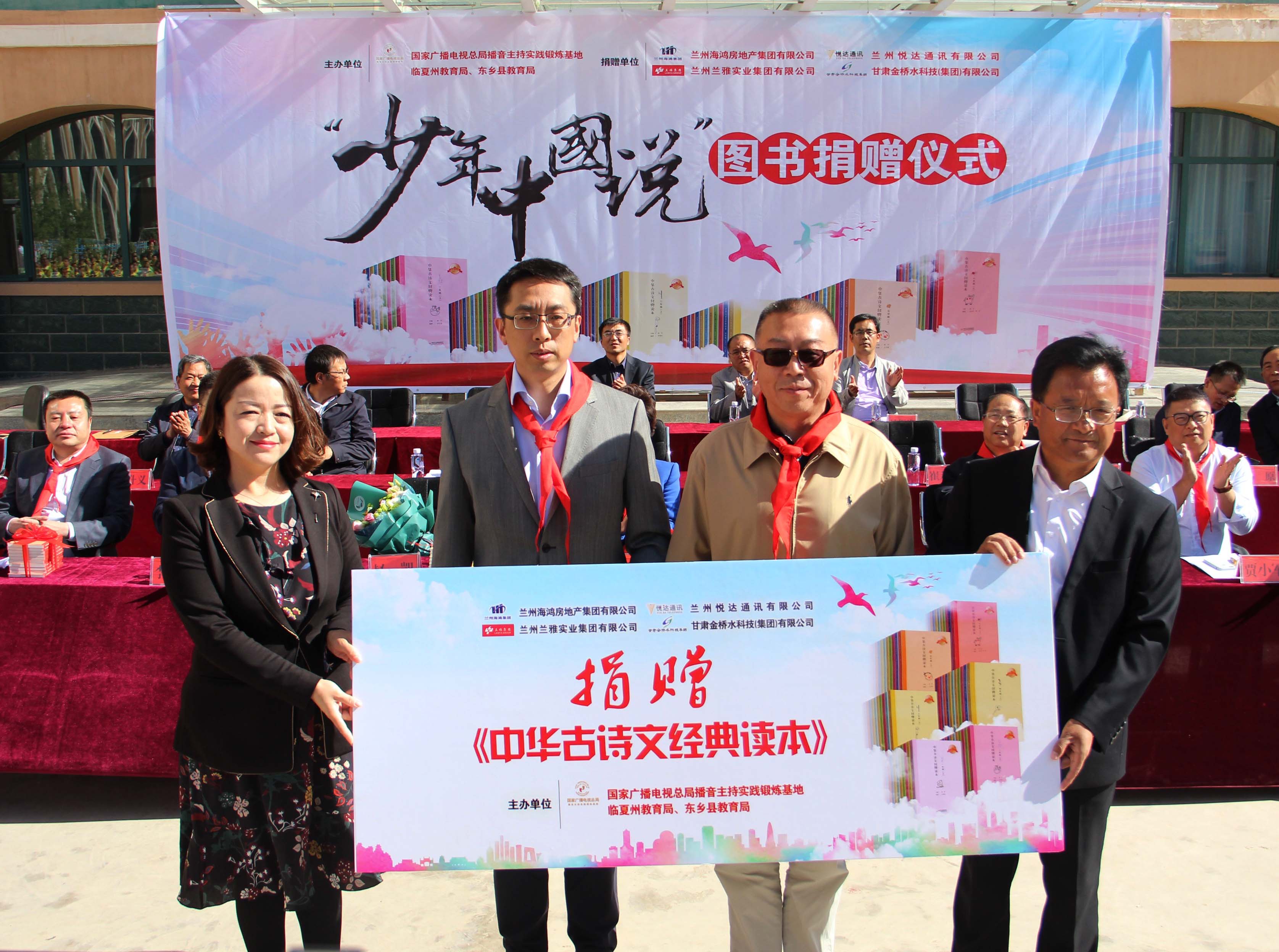 此次活动共计捐赠《中华古诗文经典读本》5000册(每册12本),其中临夏回族自治州3000册,甘南藏族自治州2000册。全国政协委员、中央电视台新闻主播海霞和中央电视台节目解说员贾小军在捐赠仪式上寄语发言,带领孩子们朗诵《少年中国说》,现场授课,感受中华古诗文经典文化的魅力。