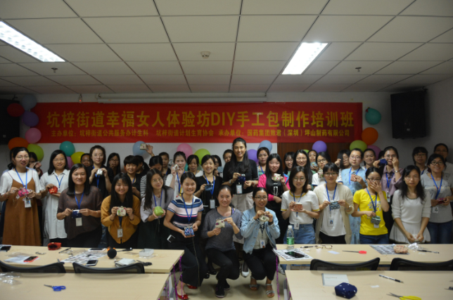 5月10日,为丰富坑梓街道社区企业家庭文化生活,激发女性居民手工创作灵感和创作热情,并促进社区和谐发展。坑梓街道在国药集团致君坪山制药有限公司举办“DIY制作培训·巧手绣出幸福梦”为主题的幸福女人体验坊之DIY手工包制作培训班活动,吸引60多名员工参加,现场制作精美的手工包100多个。同时把制作的手工包进行义卖,义卖所得款项2000余元以本次活动的名义捐助给深圳市人口基金会,用于帮助计生困难家庭。