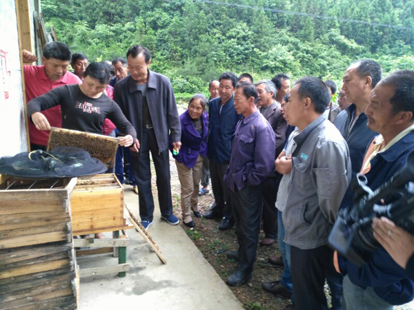 “只要你肯养,不用担心技术问题,有人会上门专门提供技术指导,请放心好了”。对于发展养蜂脱贫,胡华平开始顾虑重重,担心无技术养不好。工作人员说服胡华平同意养蜂后,合作社理事长肖尊龙主动找上门帮扶,不厌其烦毫无保留地传授技术,随叫随到的跟踪服务让她十分感动,表示有信心养好蜜蜂。