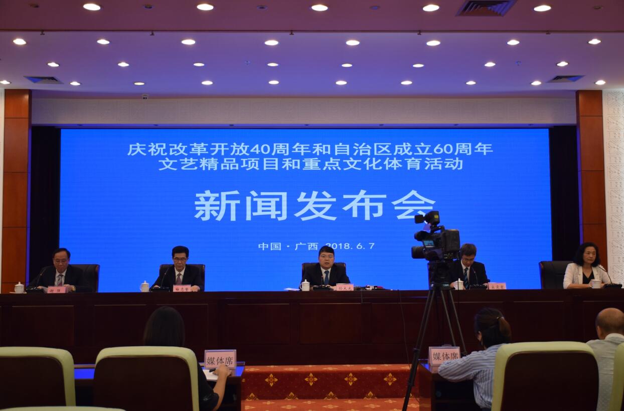 【香港商报网讯】记者欧阳萍、徐玉莹报道:6月7日,记者从新闻发布会上获悉,2018年是改革开放40周年和广西壮族自治区成立60周年,广西壮族自治区党委、政府策划组织了文艺精品项目和优秀剧目(作品)共60项,以及重点文化体育活动220项庆祝节庆。活动贯穿全年、内容丰富、覆盖面广、参与度高,以文化艺术的形式宣传经济社会发展取得的辉煌成就,展现广西文化的独特魅力,营造喜庆欢乐的节庆氛围。