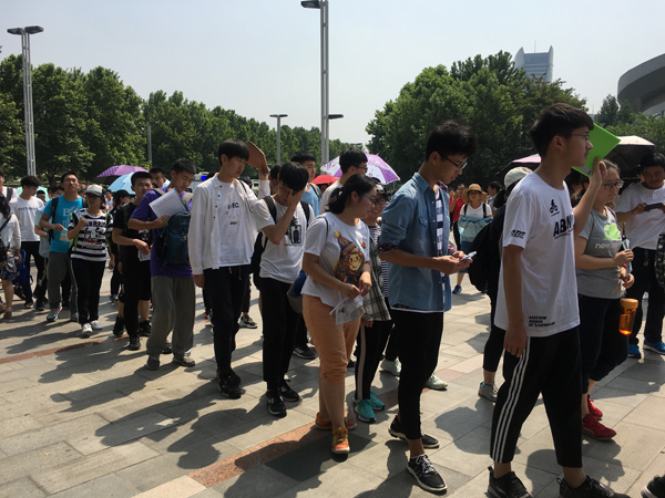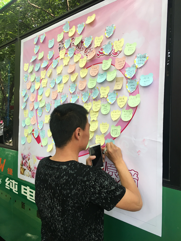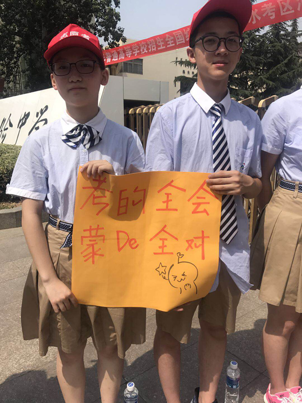 来自河南省实验中学高一的小志愿者们祝学长学姐“考的都会,蒙的都对”