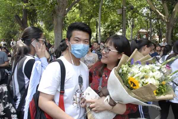 妈妈手捧鲜花来接孩子出考场,一切尽在眼神中