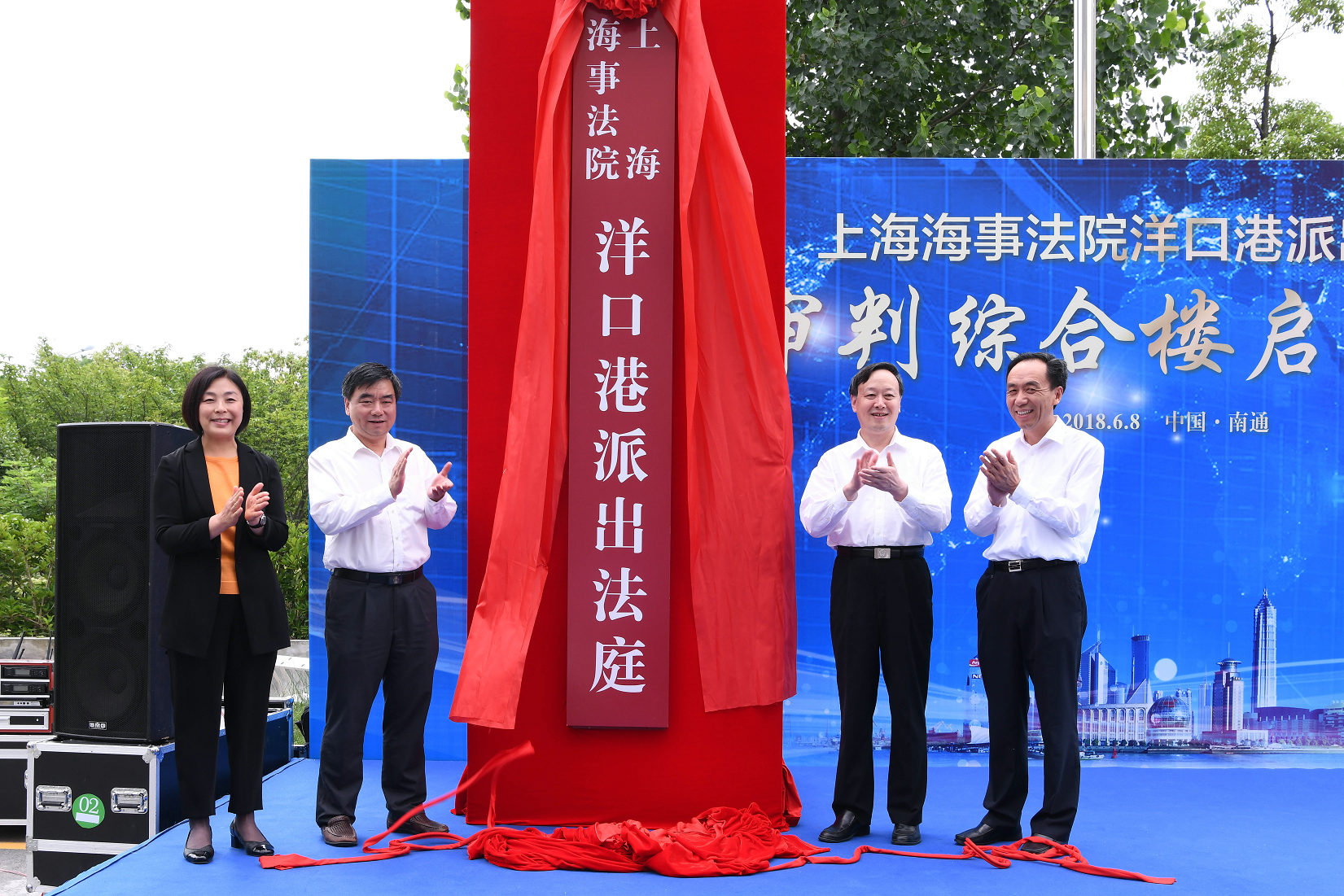 【香港商报网讯】记者杨眉报道:近日,上海海事法院在江苏省南通市举行洋口港派出法庭新址启用仪式。上海市高级人民法院党组书记、院长刘晓云,江苏省高级人民法院副院长李玉生,上海海事法院党组书记、院长赵红,江苏省南通市委常委、政法委书记姜永华出席仪式并共同为法庭新址揭牌。仪式上,刘晓云院长作重要讲话。李玉生副院长、赵红院长和姜永华书记分别致辞。