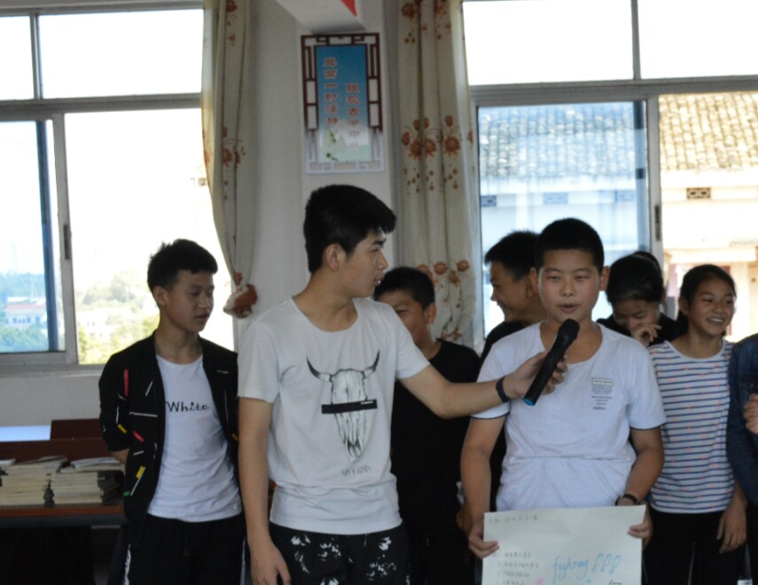 “我们是小猪佩奇队,我们的口号是‘东风吹战鼓擂,小猪佩奇怕过谁’。”简单的开营仪式后,县七中的志愿者们将干杉中学的三个班级、134名学生分成12个小组,小组迅速开展团建活动。在有限的时间内,在导师的指导下,他们迅速破冰,取好队名、制作队旗、想好队歌和口号,随后进行展示,拉开了营地活动的序幕。