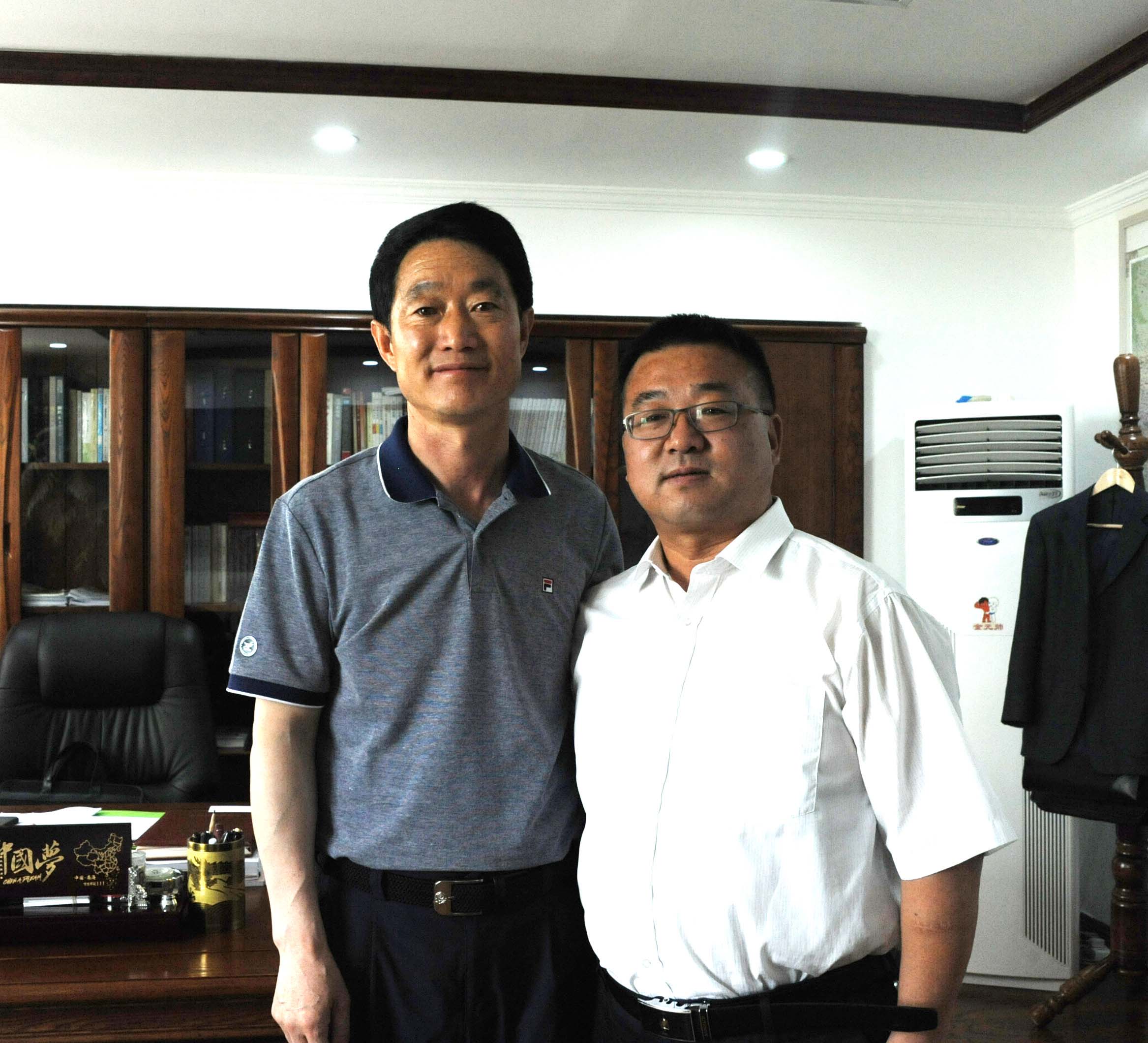 嘉峪关市市委副书记、市长丁巨胜(左)接受香港商报甘肃办事处主任陈文智(右)专访