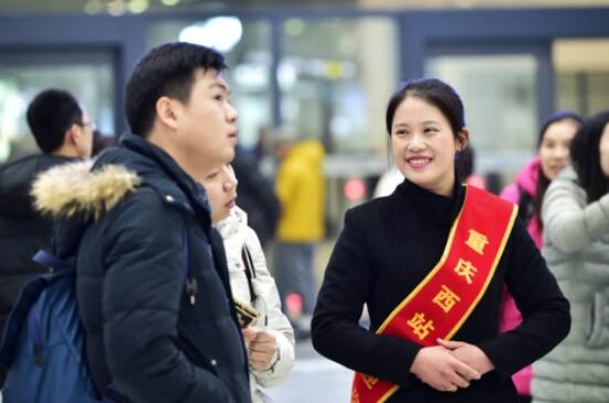 (图为龙湖物业工作人员在重庆西站为旅客提供服务)