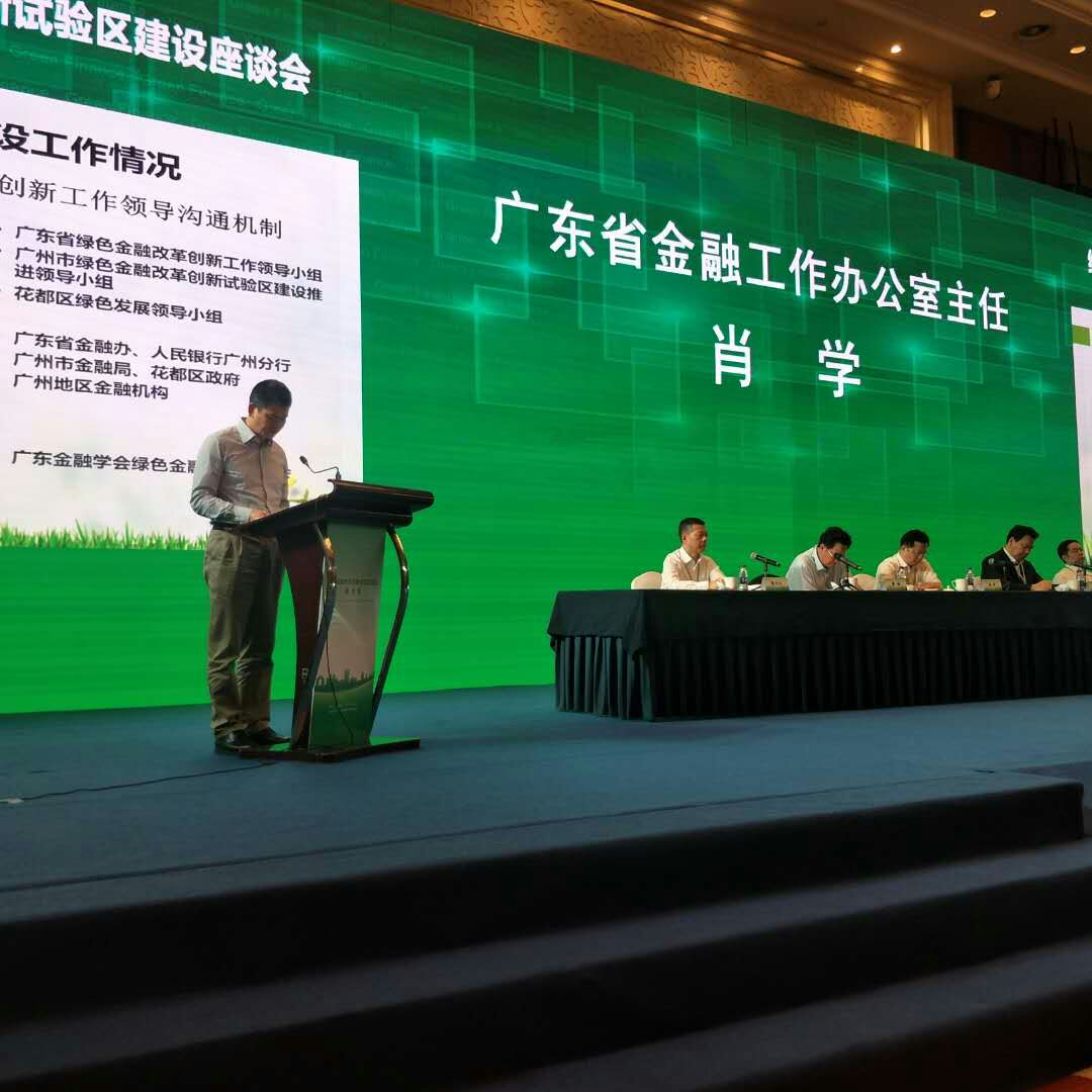 肖学在6月12日的绿色金融改革创新试验区工作汇报环节上表示,广东省广州市绿色金融改革创新试验区获批以来,广东省认真贯彻落实《广东省广州市建设绿色金融改革创新试验区总体方案》,按照“枢纽在花都、节点在各处、广州一张网、扩展到全省、服务大周边”的总体格局,紧紧围绕“绿色金融改革创新的试验田、绿色金融改革与绿色产业协调发展的示范区、粤港澳大湾区合作发展的新平台、‘一带一路’建设的助推器”四大定位,大力营造良好的环境,积极探索体制机制创新,努力推动绿色金融助力生态文明建设。