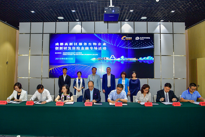 当天,先导药物、成都博恩思等7家成都高新区企业与太平洋财险四川分公司签订特色险种采购协议。成都博恩思医学机器人公司创始人、CEO李耀博士说,生命科学与医疗器械领域创新性的引入生物医药临床试验责任保险及生物医药质量安全责任保险,是金融保险行业与高端智造及创新医疗的完美结合,增强了创新企业的抗风险能力,将为生物医药产业的跨越式发展提供坚实有力的基础与保障。负责人对成都高新区创建“政府+保险+企业”产业培育模式表示欢迎,“这一模式针对性强,有助于解决生物医药企业的后顾之忧,增强企业抗风险能力”。