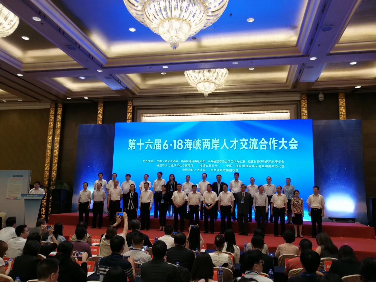 【香港商报网讯】记者张杰报道:由中国人才交流协会、中共福建省委组织部、中共福建省委台湾工作办公室、福建省经济和信息化委员会、福建省人力资源和社会保障厅、福建省教育厅、中国·海峡项目成果交易会组委会办公室、中国海峡人才市场、中共福州市委组织部等联合主办的,第十六届“6·18”海峡两岸人才交流合作大会15日在福州香格里拉大酒店举行,来自海峡两岸的700余名代表示参加大会。
