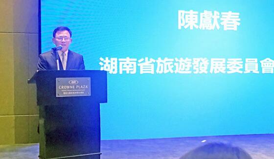 14日晚,“錦繡瀟湘”走進香港——湖南旅遊推介會舉行。湖南省旅發委黨組書記、主任陳獻春在推介會上熱情邀請香港旅客乘坐高鐵遊湖南。