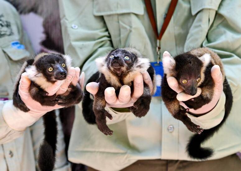 【香港商报网讯】记者黄裕勇报道:不断创造动物繁育奇迹,长隆野生动物世界正成为名副其实“动物福地”。继全球唯一的熊猫三胞胎和世界首例珍稀黑叶猴龙凤胎后,来自马达加斯加特有的世界濒危物种斑狐猴,5月8日在长隆诞下世界罕见的斑狐猴三胞胎。6月16日,在父亲节来临之际,幸福生活在一起的斑狐猴三胞胎正式跟广大游客见面。而长隆的黄猩猩“毛氏家族”以及黑蜘蛛猴、长臂猿等百种灵长类朋友也齐齐出动,一起欢迎猴族大家庭新成员,齐贺父亲节。