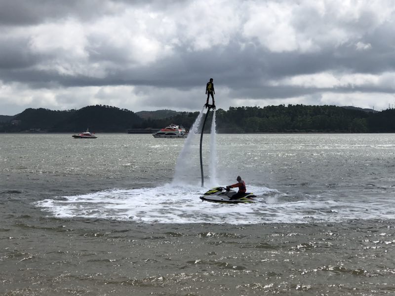 此外,在比赛开始前和结束后,市民能够近距离感受游艇、摩托艇、水上飞行鞋等海上快艇表演及欣赏《欢聚一堂》《欢乐花头瑶》《大花轿》;三人小组唱《腾飞防城港》;管乐队合奏《欢迎进行曲》《歌唱祖国》;独唱《赛龙舟》;马头琴合奏《万马奔腾》;小组唱《北部湾情歌》;萨克斯独奏《西班牙斗牛士》等具有防城港边海特色及异国风情韵味的文艺表演。