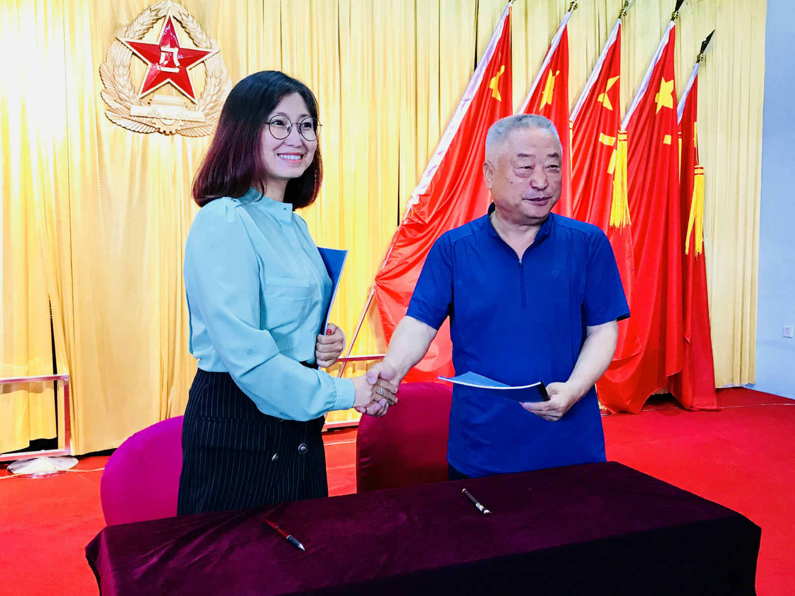 哈尔滨青少年教育研究会会长、秘书长陈美彤与三五将军文化博物馆馆长王军签署合作协议