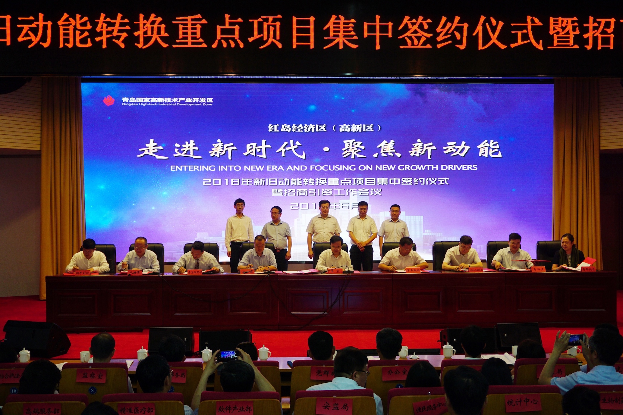 青岛高新区工委委员、管委副主任王震宣布了《红岛经济区加快新旧动能转换推动产业发展若干政策》,政策主要目的一是建立红岛经济区新一轮招商引资政策体系,着眼于引进培育“四新经济”,发展新动能;二是调整现有产业政策,推动存量企业扩产增效、培育发展壮大。包含鼓励“四新”企业落地落户、加大奖励企业高管、加大奖励招商引资中介、鼓励存量企业扩产提效、鼓励重点企业倍增发展、鼓励产业集聚园区发展、鼓励完善城区功能配套、支持重点企业项目发展、设立区产业发展专项资金等部分。