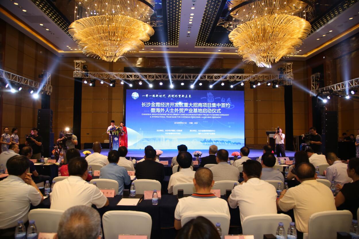 【香港商报网讯】记者刘洗涌报道:6月21日,长沙金霞经济开发区重大项目集中签约仪式暨海外人士外贸产业基地启动仪式隆重举行。湖南省口岸办主任,省商务厅党组成员杨中万,长沙市人民政府副秘书长王体泽,开福区委书记沈裕谋等省、市、区领导;中国外商投资协会原常务副会长邵祥林,非洲第一银行主任奥多,长沙市政协原主席、海外人士外贸产业基地筹备领导小组组长董学生等嘉宾;以及省直、市直、开福区、金霞经济开发区、金霞保税物流中心等相关部门领导,海外人士外贸产业基地入驻人士——来自印度、厄瓜多尔、乌克兰、加纳等国的40多位国际友人,海内外80余家企业代表,和人民日报、新华社、经济日报、中央广播电视总台、中国新闻社等央媒驻湘机构的记者朋友们,近200人参加。