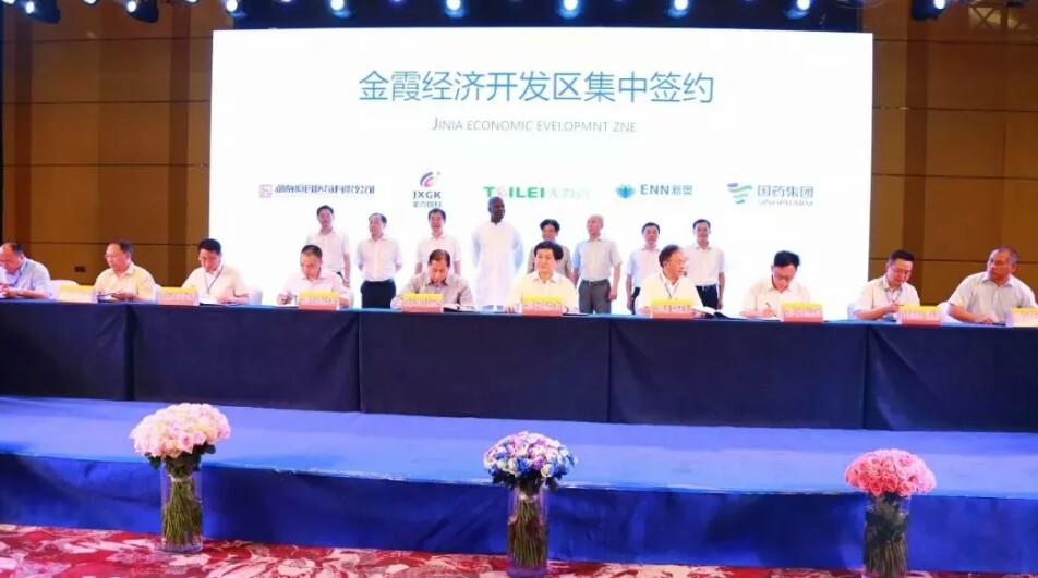 现场19个项目集中签约,其中园区引进项目10个,基地引进项目9个,包括三一集团、非洲第一银行、北汽福田、天力管、新奥燃气、国药控股等公司,产业类别涵盖医药物流、军民融合、装配式建筑、新能源等,签约金额超过40亿元。